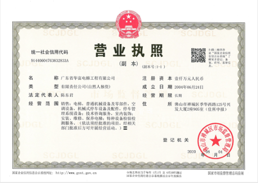 產品名稱:廣東省華富電梯工程有限公司營業執照